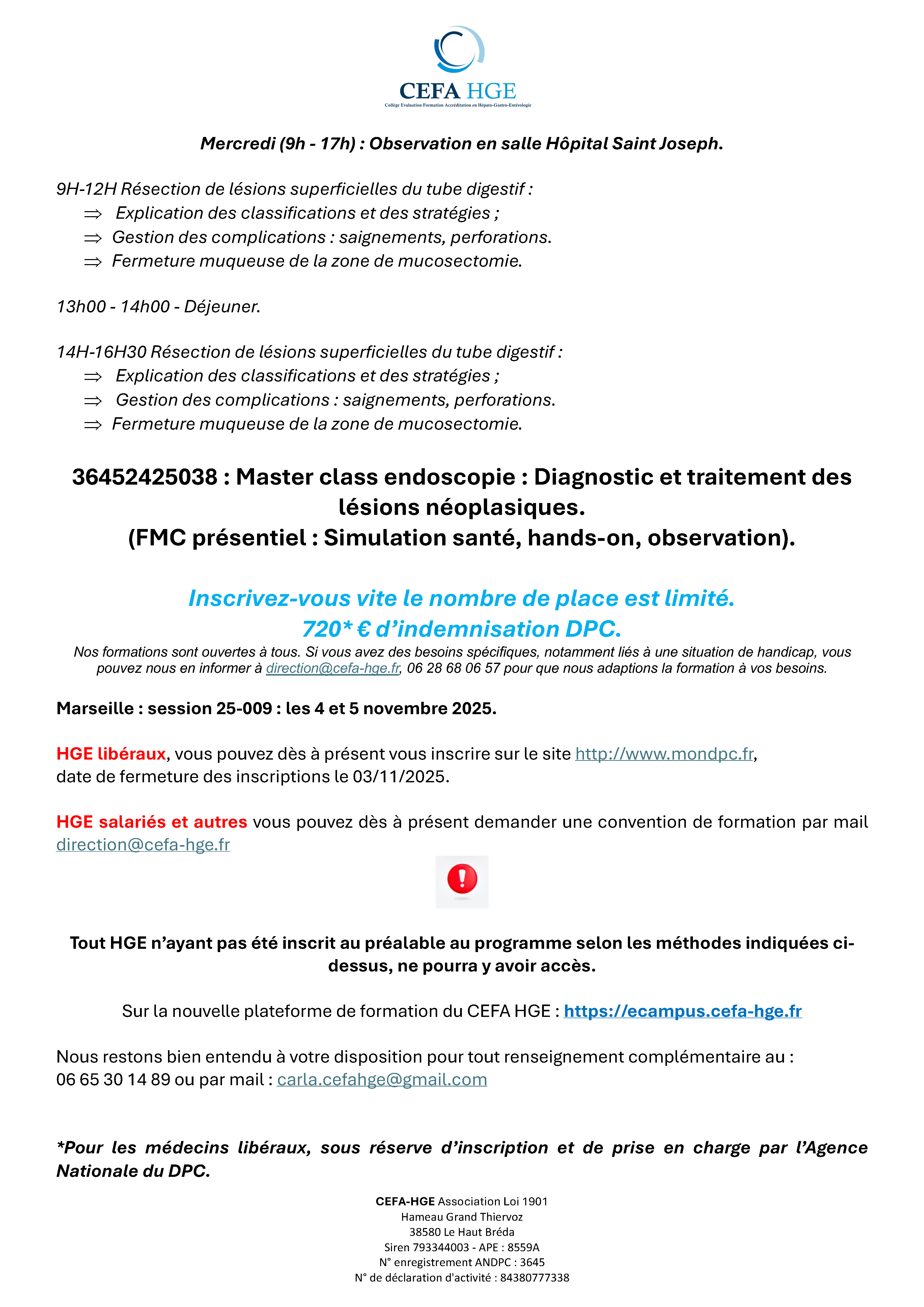 Le but de cette session de FMC dans le cadre du DPC est de présenter toutes les étapes indispensables pour optimiser les résultats des endoscopies en s’appuyant sur I) les recommandations de bonnes pratique nationales et internationales et II) des exemples pré-enregistrés pratiques nécessaires pour expliquer quelles images doivent être recherchées, et habituer l’œil des enseignés à la reconnaissance d’images parfois subtiles.