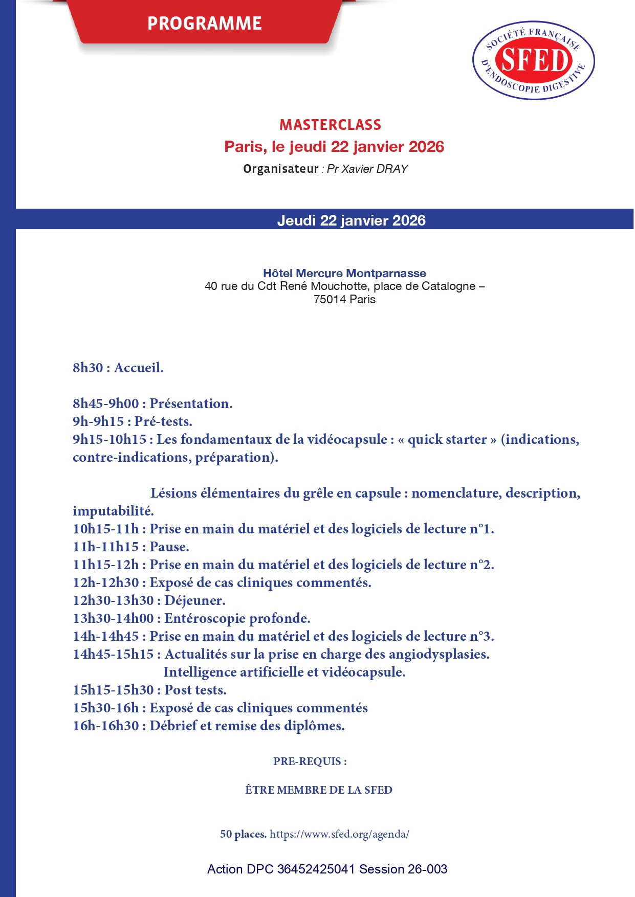 PROGRAMME EN ATTENTE sur la SFED - Préinscription DPC possible