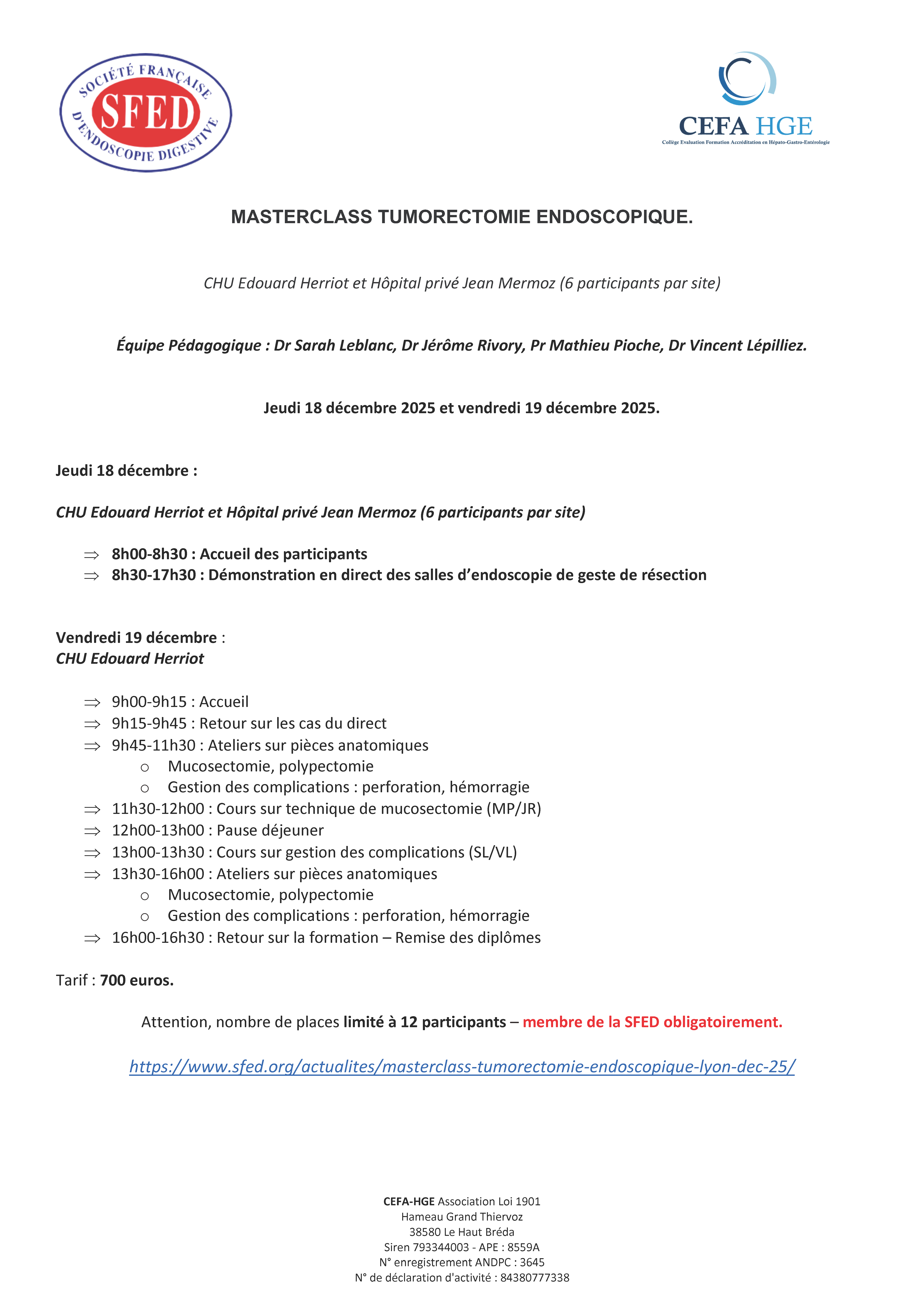 Les Hépato gastroentérologues ont la lourde tâche de réaliser le dépistage des cancers digestifs et le traitement des cancers digestifs précoces en utilisant différentes méthodes d’endoscopie digestive. .(IARC 2003-2013, INCA 2023) Ce processus d’endoscopie de diagnostic est très courant. Par exemple 1400000 coloscopies sont réalisées de façon annuelle dans cet objectif. L’étape fondamentale est la reconnaissance de ces cancers et/ou des pré-cancers lors d’un examen soigneux de la muqueuse du tube digestif, et cela à plusieurs niveaux : œsophage, en muqueuse épidermoïde et en muqueuse de Barret, estomac, duodénum, côlon. Chaque localisation de cancer digestif nécessite une connaissance de l’épidémiologie de ces lésions (en particulier leur fréquence en fonction du terrain) et de la manière dont ces lésions doivent être recherchées, en incluant différents artifices dont les endoscopes disposent : chromoscopie réelle, virtuelle, grossissement par zoom, définition augmentée. Les images générées par endoscopie sont donc extrêmement variées, et nécessitent une formation poussée et complexe que seule une grande habitude associée à une formation initiale de qualité permet de réaliser. Ces méthodes sont très évolutives, de nouvelles images sont générées tous les 2 ou 3 ans, et une formation en continu est donc particulièrement importante et nécessaire. De plus, des terrains particuliers correspondant à des pathologies chroniques génétiques ou acquises complexifient le niveau de risque et certains aspects de ces lésions pré-cancéreuses. C’est en particulier le cas des polyposes génétiques et des maladies inflammatoires de l’intestin qui seront abordées lors de cette formation.